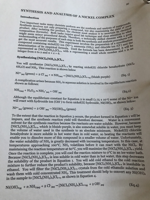 Solved Synthesis And Analysis Of A Nickel Compd Chegg Com